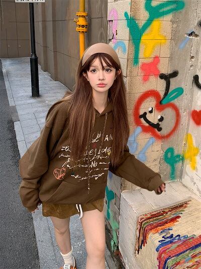 2024秋冬トップス 普段使い 厚手裹起毛韓国風長袖レトロパーカーカジュアルルーズファッション系ゆったり大人っぽかわいいレディースフード付き羽織りサイズきれいめシルエットトレーナー 大学生通学高校