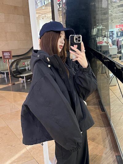 ふっくら中綿 あたたかい 冬 防寒あったかショート暖かいかわいいフード付きブルゾン厚手アウターブルーBF風 無地羽織るファッション大人ゆったりカジュアルストリートネックにサイズゆるダボシルエット秋_白