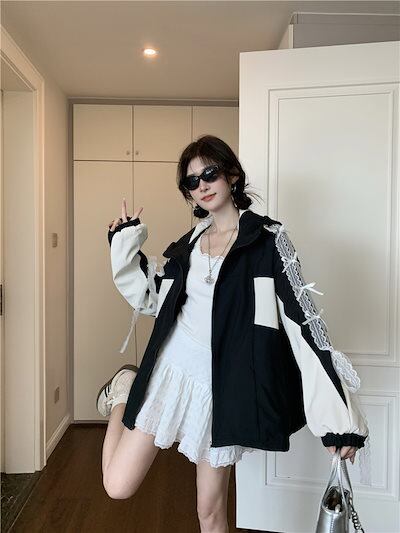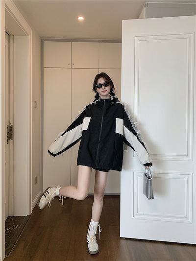 2024 秋冬アウター パーカー フード付き チャック 長袖 細見え 秋 黒 ブラック おしゃれ かわいい キュート 甘め 韓国系ファッション ストリートレディース お出かけトラック