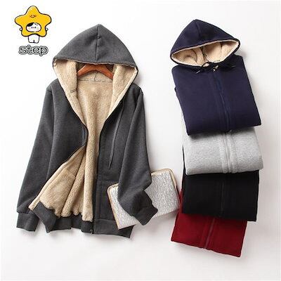 裏ボア パーカー スウェット ジャケット レディース 裏起毛 アウター フリース ジップ カーディガン ルームウェア あったか 裏フリース 無地