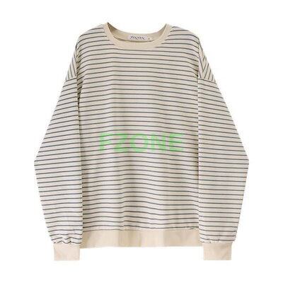 パーカー レディース プルオーバー クルーネック 長袖 アウター カットソー ストライプ カジュアル ゆったり 着痩せ 可愛い 高級感 春秋 おしゃれ