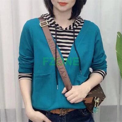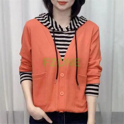 新作 パーカー レディース フード付き 長袖 プルオーバー フェイクレイヤード 羽織り アウター ゆったり カジュアル 着痩せ 春秋 通勤 おしゃれ