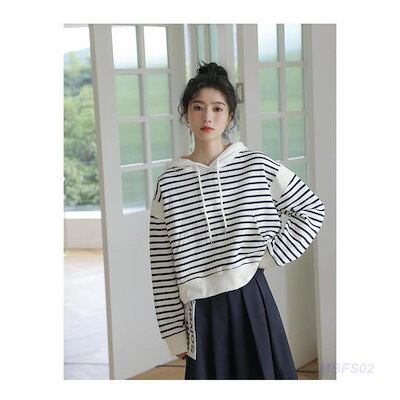 パーカー レディース 長袖パーカー フード付き トップス プルオーバー ストライプ柄 カジュアル シンプル ゆったり 秋服 カーデ イベント トレンド