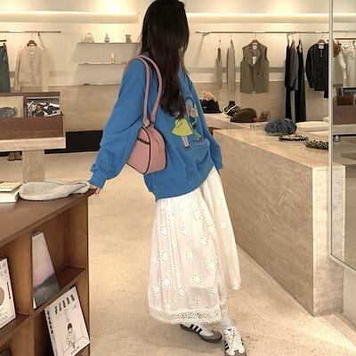 韓国ファッション レディースバーカー フード付きスウェットシャツ+百掛けレーススカートスーツ