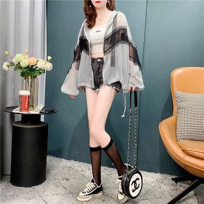 パーカーシアーシャツUVカットブラウス日焼け止めカーディガン薄手スーツアウターシフォンショート丈サマーシフォンシャツ韓国ゆったりレディースロングシャツ冷房対応