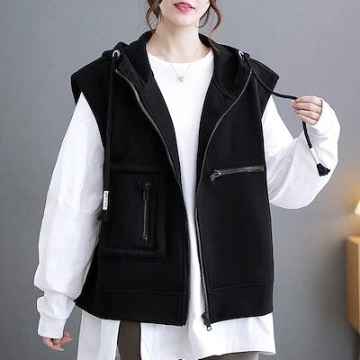 春2024新型レディースフード付きベストパーカー新型ベスト韓国ドローストリングパーカースウエット