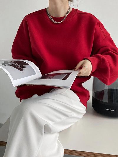 韓国 パーカー韓国版chicゆったりパーカー レディース衛衣長袖プルオーバーダウンを厚くするワインレッドの衛衣スウェットパーカー