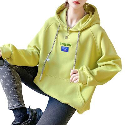 メガ割 春 新商品 文字 カジュアル 韓版 プルオーバーデザイン 欧米 ドローストリング ゆったり フード付きスウェット レディース