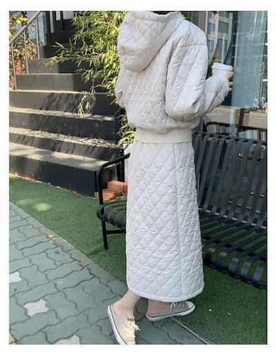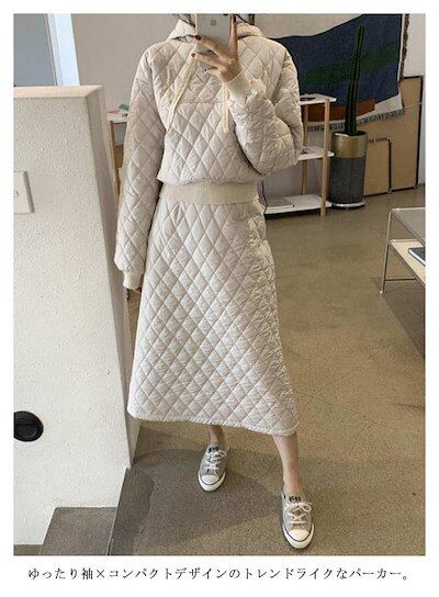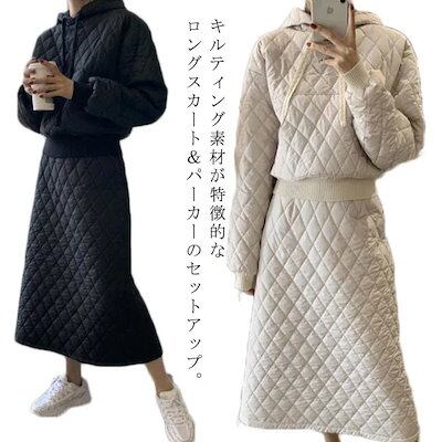最短出荷 キルティング セットアップ レディース キルティング パーカー スカート 2点セット 中綿 キルト プルオーバー フード付き 服 中綿パーカー 中綿スカート 大人可愛い カジュアル