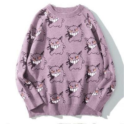 大人気2024新作 ポケモン ニット セーター グレー ハロウィンカップル 原宿風可愛い秋冬服 ゲンガー ニット オルチャン 総柄