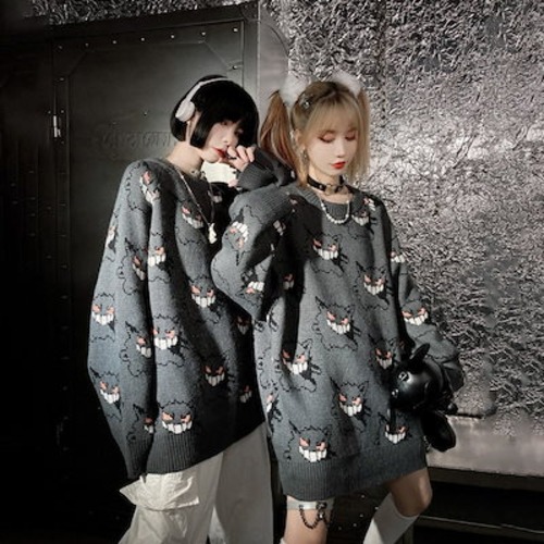 【大人気】2024新作 ポケモン ニット セーター グレー ハロウィンカップル 原宿風可愛い秋冬服 ゲンガー ニット オルチャン 総柄