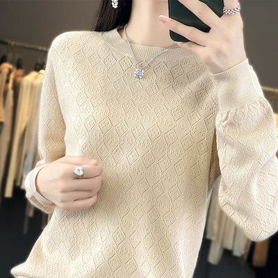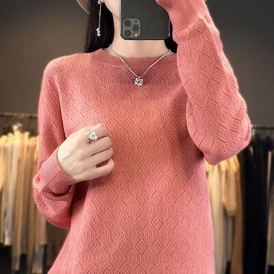 ベーシックニット丸首透かしニットレディース秋冬新作アウター長袖セーターカーディガンゆったり着やせトップス