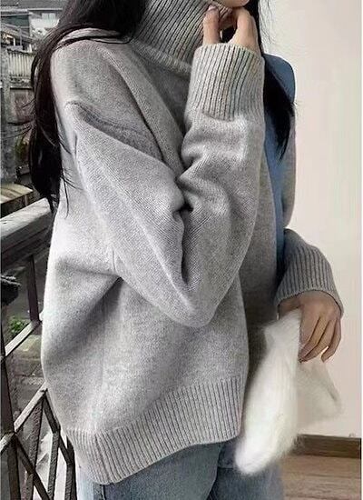 秋冬 タートルネックセーター レディース ゆったり 怠惰風 トップス プルオーバー カジュアル 百掛け 無地 インナー 長袖ニット