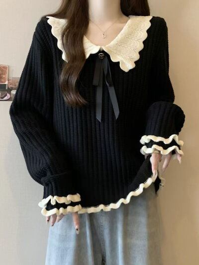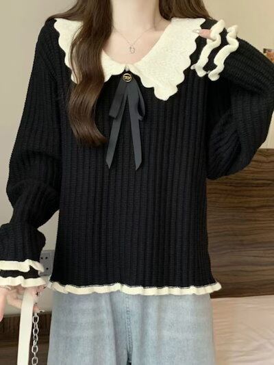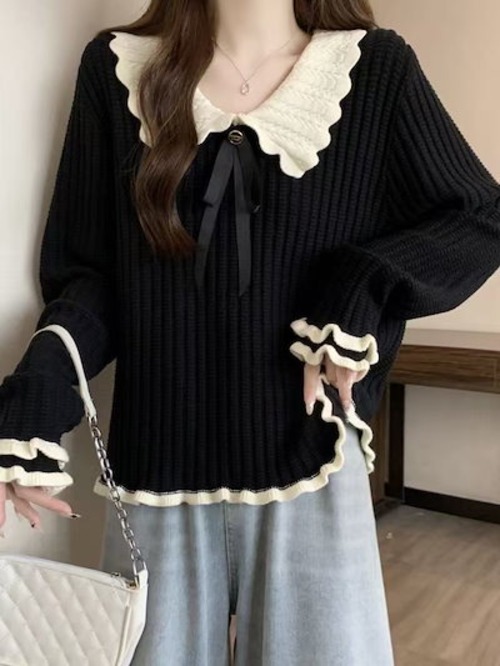 小香風 インナー セーター 秋冬新作 ベビーカラー トップス プルオーバー レディース カジュアル 百掛け 長袖ニット