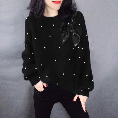レディースファッション セーター プルオーバー 秋冬新作 ゆったり 怠惰風 ニットトップス インナー ラウンドネックセーター