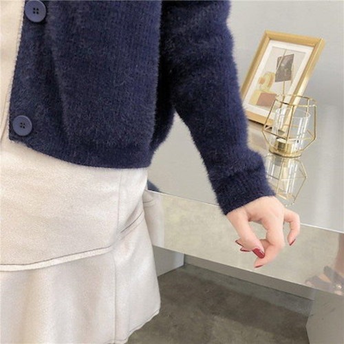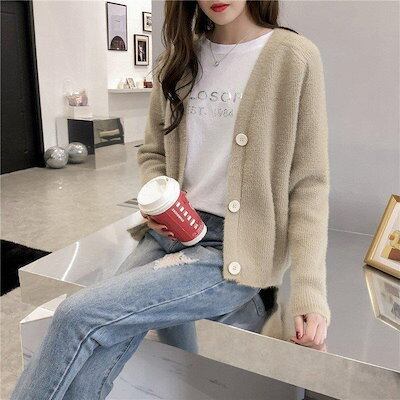 【beifengzh 0 ng】新作ニットカーディガン レディース 秋冬 長袖 Sショット丈カーデ モヘアコーディガン ニットトップス 無地 ニットアウター セーター 大人 オシャレ3色