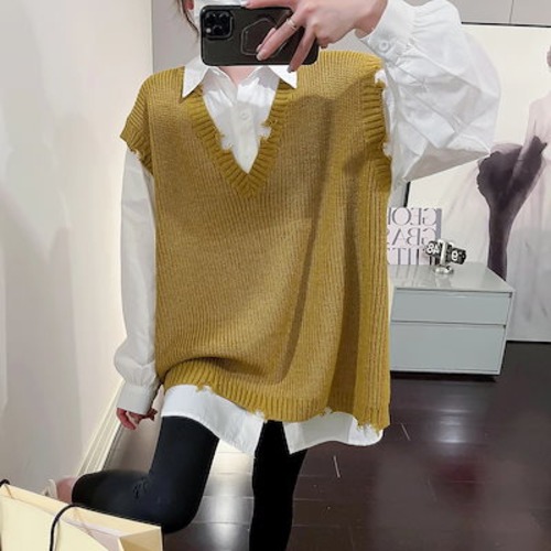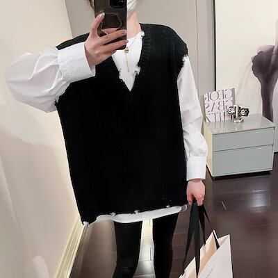 人気なリブニット 初 ベーシックニットベスト 韓国ファッション 重ね着 ニットベスト ゆったり 大きいサイズ セーター レディースベスト 怠惰な風 体型カバー? ジャケット アウター