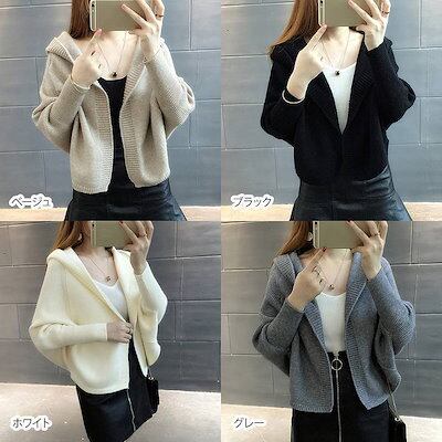 レディース カーディガン フード付き ニット セーター 秋 冬 長袖 羽織 アウター 長袖 トップス 大人 可愛い フェミニン おしゃれ ベージュ ブラック ホワイト グレー ワインレッド ブラウ