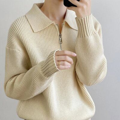 ニットセーター レディース アウター 配色 ボーダー柄 ハーフジップ 長袖 リブ編み 切り替え プルオーバー トップス カジュアル 柔らかい 暖かい ゆったり 体型カバー シンプル 秋冬 快適 通勤