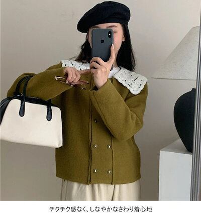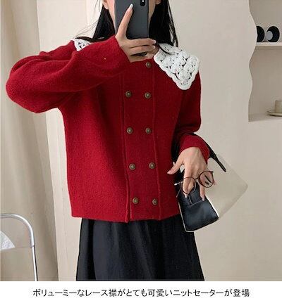 ニットセーター レディース 長袖 セーター ニット ジャケット コート レース襟 ボリューミー襟 厚手 トップス アウター ボタン付き プルオーバー 柔らかい 暖かい 大人可愛い おしゃれ シンプル