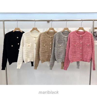 ニット カーディガン ジャケット レディース 秋 冬 春 ニット アウターショート丈 クルーネック トップス ノーカラージャケットゆったり 長袖 カジュアル 大人