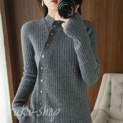 ニットセーター レディース 秋冬 セーター ゆったり アウター セーター 斜めボタン ニット トップス カーディガン 変形デザイン ボタンライン 無地 長袖 秋 冬 保温 シンプル カジュアル おしゃ