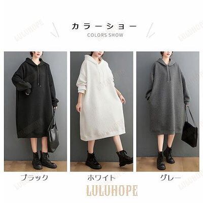 ロングパーカー レディース フード付きワンピース 春秋 オーバーサイズ パーカー ひざ丈 Aラインワンピース 体型カバー ワンピース 大きいサイズマウンテンパーカー