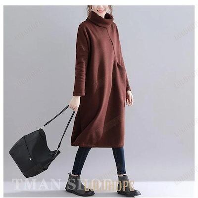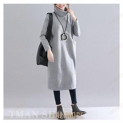 パーカーワンピース レディース 長袖 ハイネック ロング丈 裏起毛 無地 大きいサイズ ゆったり カジュアル 暖かい ファッション 秋冬物 新作マウンテンパーカー