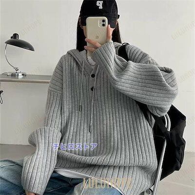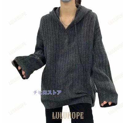 ニットパーカー レディース ニット 厚手 パーカー プルーオーバー トップス フード付き ニットセーター オーバーサイズ 体型カバー プルパーカー