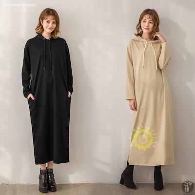 パーカーワンピース 春秋 レディース パーカー ワンピース 大きサイズ マキシ丈 ロングワンピース ロング丈 秋冬 フード付き 長袖 体型カバー