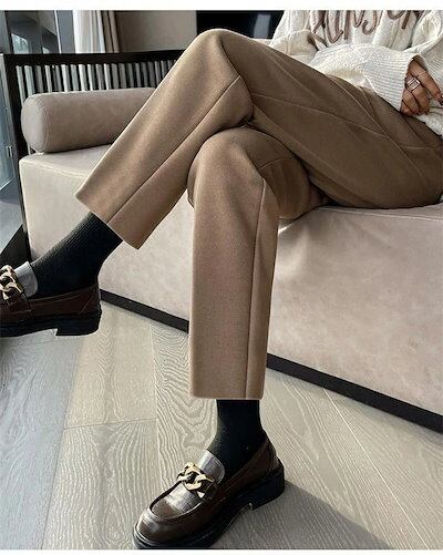 テーパードパンツ レディース パンツ 秋冬 ロングパンツ 裏起毛 長ズボン ボトムス スラックス 無地 ポケット付き ズボン 体型カバー ロング丈 ハロンパンツ ハイウエスト 暖かい カジュアルパンツ