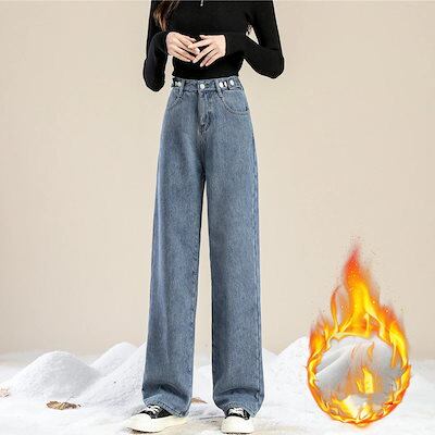 デニムパンツ レディース ワイドパンツ 裏起毛 裏ボア ジーンズ 厚手 ハイウエスト 秋冬 ジーパン 保温 防寒 暖かい ロングパンツ ゆったり 通勤