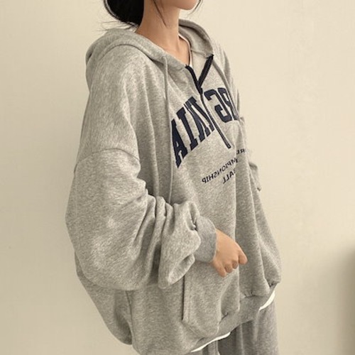 2024 秋冬3カラー ハーフ パーカー ロゴプリント 裏起毛 フード付き トップス 長袖 レトロ 韓国ファッション レディース カジュアル