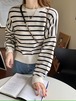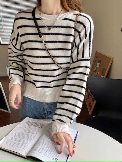 2024秋冬トップス カーディガン ニット セーター ラウンドネック メロウ襟 ボタン ハート 長袖 ボーダー柄 春 ゆったり 黒 赤 韓国ファッション レディース おしゃれ かわいい カジュアル お