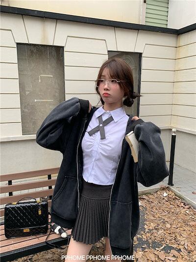 2024 秋冬 韓国 かわいい レディース 裹起毛 フード付きフーディーブルゾン羽織り加工長袖シルエットトップスコーデ冬カジュアルファッション系サイズフル丈トラック女子ルーズアウターに合うスウェット