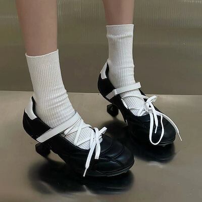 2024 秋冬 可愛い ゆったり ボリュームソール 足首ほっそり 厚底 シューズ 脚長効果 美脚見え 学生 通学 シンプル カジュアル 涼しげ スタイルアップ kawaii 靴 白