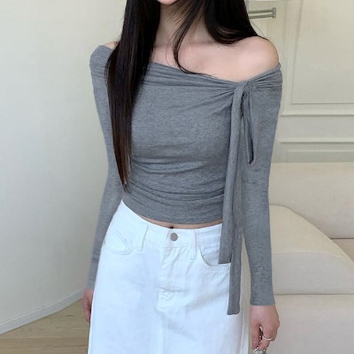 2024秋冬 2wayトップス 長袖 可愛い おしゃれ 韓国 Tシャツ ロンT フィット カットソー ラ レディースネック Tファッション系 大人可愛い おしゃれ カジュアル セクシー きれいめ丈