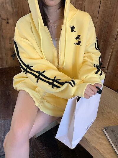 2024 秋冬 かわいい レディース フード付きアウターフーディーロゴブルゾン長袖シルエット羽織りトップスサイド冬カジュアルファッション系サイズお出かけフル丈トラック