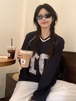 2024 秋冬 トレンド トップス 甘辛MIX長袖 かわいいTシャツレディース韓国風ロゴ衣装ルーズゆったりカジュアルおしゃれサイズスリーブシルエットネックファッション系サイドシャツフット春