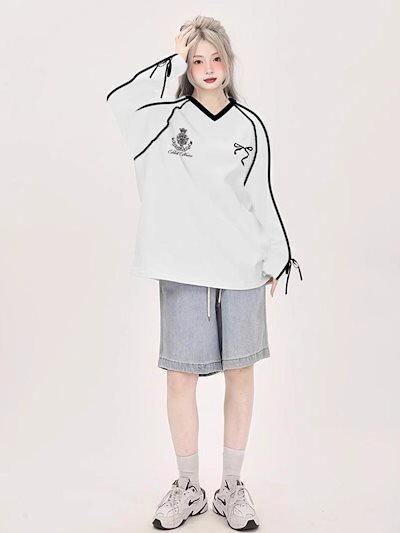 2024 秋冬 トレンド トップス 長袖 かわいいTシャツレディース韓国風ロゴロングルーズネックゆったりカジュアルおしゃれサイズスリーブシルエットファッション系サイド 衣装シャツフットスウエット春