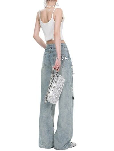 2024秋冬 韓国トレンドデニムパンツ ボトムス ジーンズ デザインファッション系スタイル ゆるダボ ジーンズ シルエット加工ゆったり レディース カジュアルコーデ 春夏 メンズライク