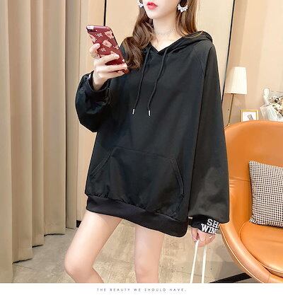フーディウエストゴムネイビーブラック裏起毛女の子ストリートスポーツウェアジャージスウェットレディース