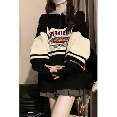 2024秋冬2TYPE裹起毛トップス長袖かわいいプリントK-POPTロングレディース韓国風衣カラールーズゆったりカジュアルハーフおしゃれサイズスリーブシルエットファッションサイドシャツ