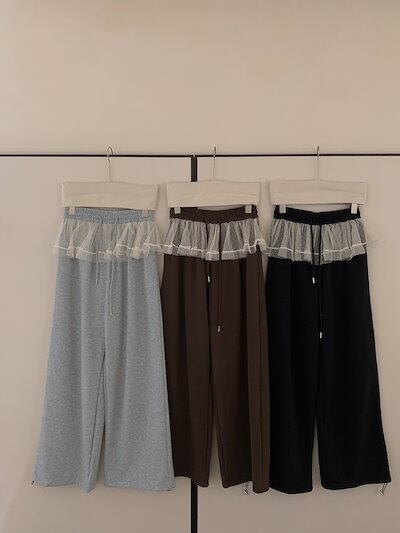 オンリーワントゥーユー韓国ファッション レース スラックス レース装飾 快適である 厚め ゆったりする 足を束ねる ししゅう カジュアルパンツ ロングパンツ レディース