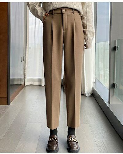 テーパードパンツ レディース パンツ 秋冬 ロングパンツ 裏起毛 長ズボン ボトムス スラックス 無地 ポケット付き ズボン 体型カバー ロング丈 ハロンパンツ ハイウエスト 暖かい カジュアルパンツ