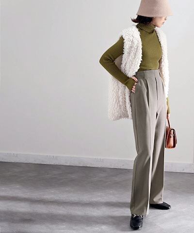 Classical Elfボトムス パンツ レディース 暖か 美脚 ウール調 セミフレア センター プレス スラックス 起毛 ウエスト 後ろ ゴム ゆったり すっきり 楽ちん ベルトループ 大きいサイズ 秋冬 グレー モカ