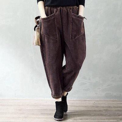 大人気上品テーパードパンツコーデュロイパンツレディース裏起毛暖かいサルエルパンツハイウエストコーデュロイパンツゆったり