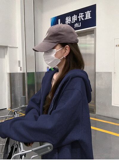 トレンチコートレディース春冬カーディガンジッパーキャップ厚手秋冬ネイビートップス