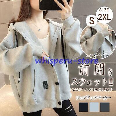 スウェット パーカー レディース 長袖 トップス カバー トレーナー 前開き ボタン付き 体型カバー 羽織り フード付き きれいめ 着やせ シンプル