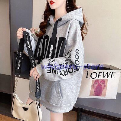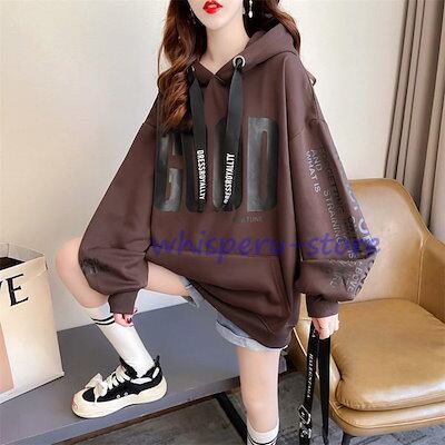 パーカー レディース プルオーバー 長袖 トップス スウェット ゆったり ファッション お洒落 ロゴ柄